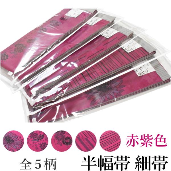 お洒落 半幅帯 【赤紫色】(日本製品/織柄/リバーシブル/小袋帯 細帯/カジュアル 変わり結び 浴衣 普段着 長尺 4.0メートル 袴下帯 浴衣帯 )