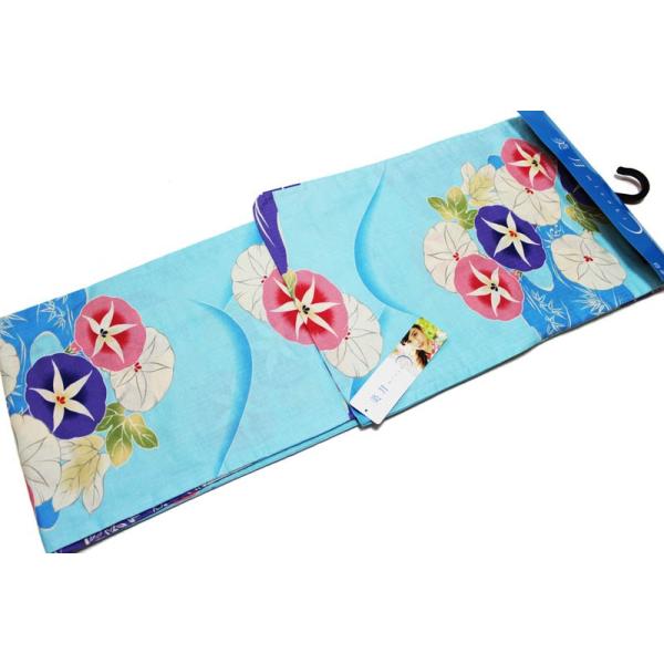 山本美月 ブランド綿麻浴衣-No.009【地色:水色/仕立て上がり/フリーサイズ/綿85%麻15%/送料無料】