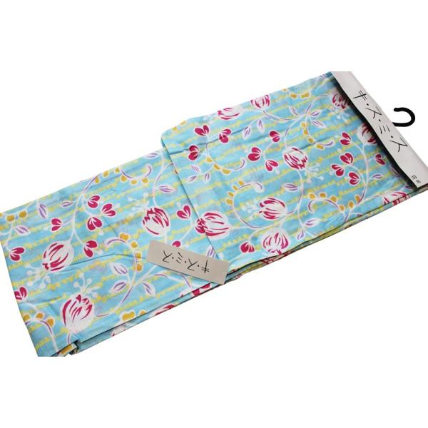 キスミス ブランド綿浴衣単品-No.051 水色【仕立て上がり/フリーサイズ/綿100%浴衣/夏祭り 花火大会 女性用 仕立て上がりブランド】