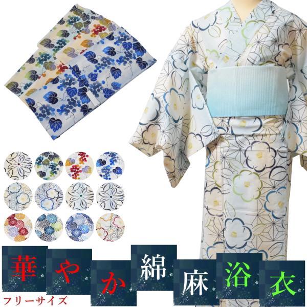 華やか 綿麻 浴衣-単品 価格 古典 花柄 浴衣 大人 落ち着いた No.312〜323【単品 仕立て上がり 浴衣 フリーサイズ 綿 麻 レディース】