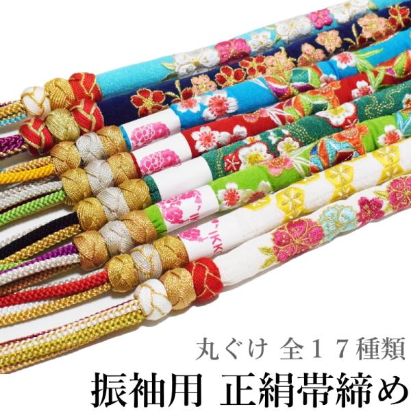 【在庫処分SALE】メール便送料無料 丸ぐけ 振袖 正絹 帯締め No.101-117(17配色から選べる 正絹 帯〆 振袖 シルク 成人式 卒業式 水色 赤 紺 緑 黄緑 白 黄)