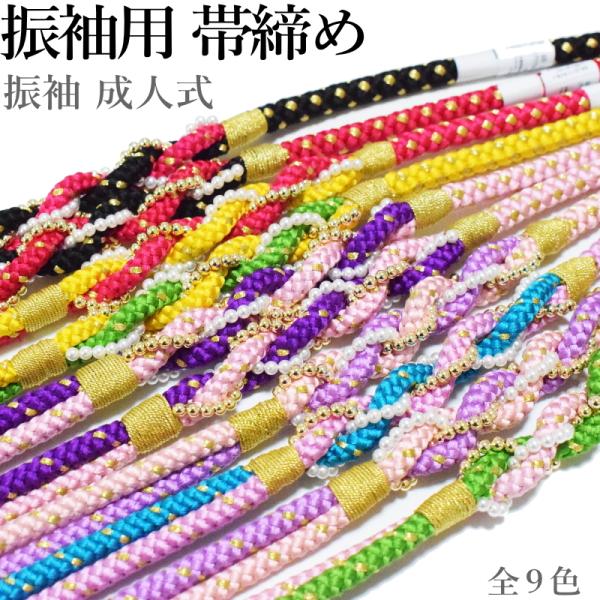 メール便送料無料 振袖 正絹 帯締め No.331-339 (9配色から選べる 正絹 帯〆 振袖 シルク 成人式 卒業式 緑 紫 ピンク 黄 赤 黒)