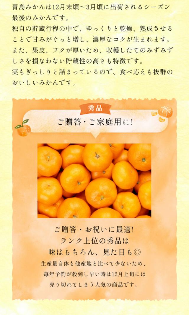 三ヶ日みかん 青島 4kg S〜LLサイズ 秀品相当 濃厚な甘さほどよい酸味のバランスが絶品 濃厚熟みかん 青島みかん独特の貯蔵行程を経て熟成された食べ頃を産地直送で