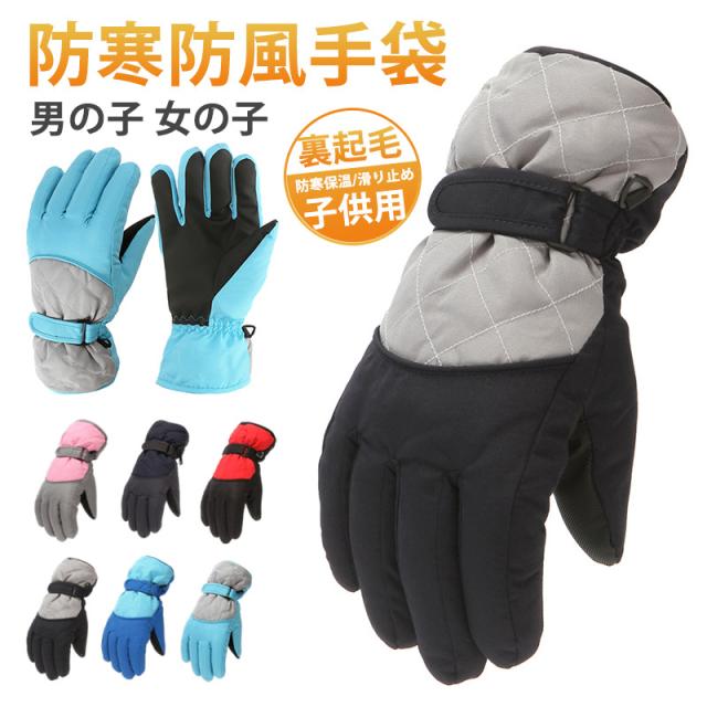 スキー グローブ 手袋 キッズ 裏起毛 厚手 防寒 防水 防風 スノー手袋 裏ボア 滑り止め 保温 暖かい 男の子 女の子 アウト