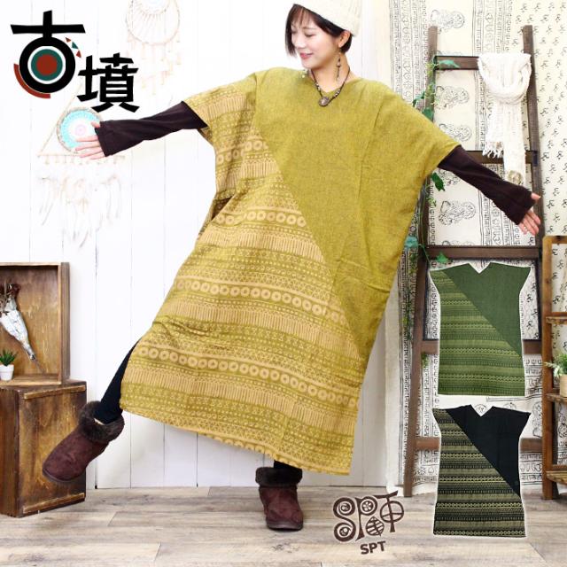 【メール便不可】 ワンピース レディース 【SPT】古墳プリント ポンチョワンピ 2025年秋冬