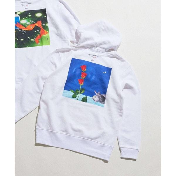 とんだ林蘭×NANO universeコラボのフードパーカー。冬の夜のキラキラした雰囲気や澄んだ空気をイメージし、この企画のために描きおろしたアートワークが主役になる1枚。作品をプリントしたパッケージ付属で女ゴコロをくすぐるようなデザインが、ちょっとしたギフトにも最適です。