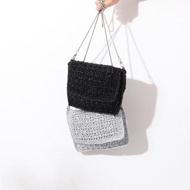 メタリック編みフラップバッグ