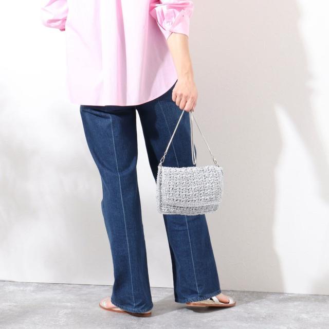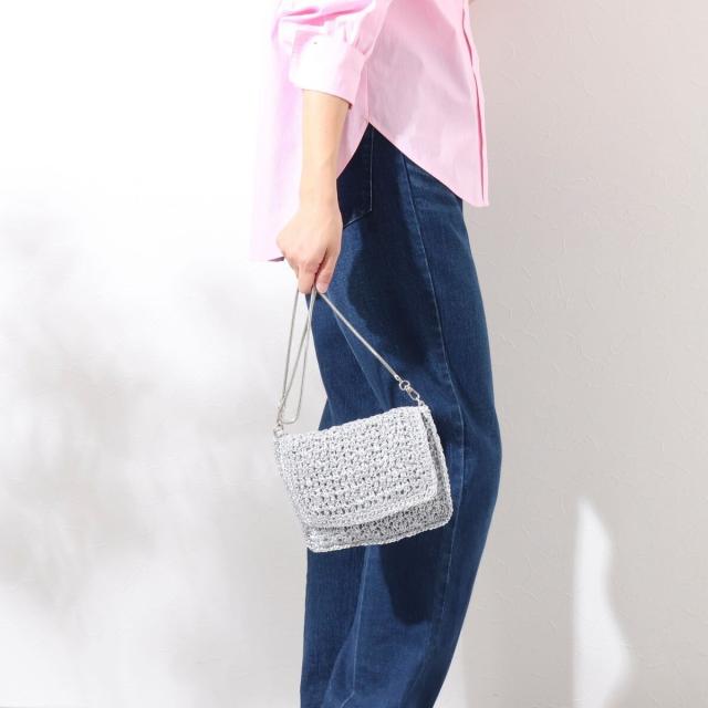 ・メタリック素材を編み込んだ華やかな印象のフラップバッグ
