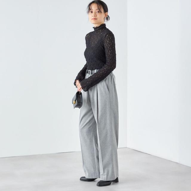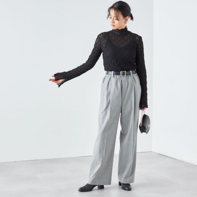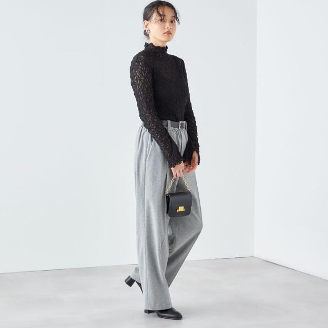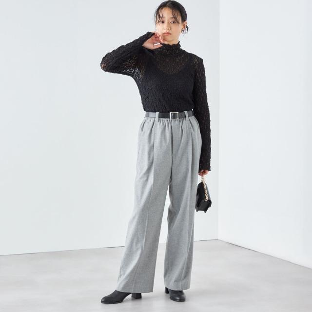 ベルトループ付きなのでトップスをインしてベルトをし、ジャケットやブルゾン、コートを羽織るスタイルがおすすめです。