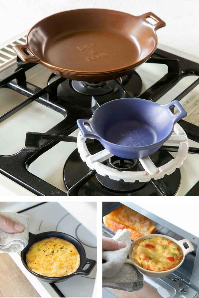 忙しい毎日に嬉しい、下ごしらえから食卓まで1つで完結する耐熱陶器製のプレートです。トーストを焼く時に一緒にグリルやトースターに入れれば、手軽に目玉焼きが完成。スイーツや副菜を盛り付けるのにもちょうどいいサイズ感です。