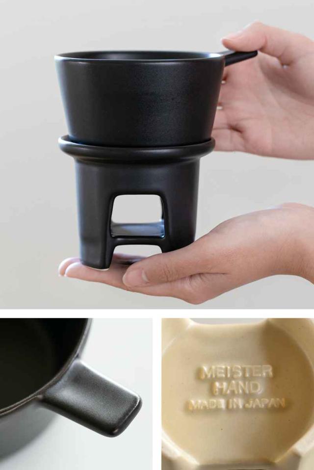 表面はサラサラとした質感で、持ちやすい取っ手がついています。ソースパンの裏面、ウォーマーの裏面にはそれぞれ「MEISTER HAND」のおしゃれなロゴ入りです。