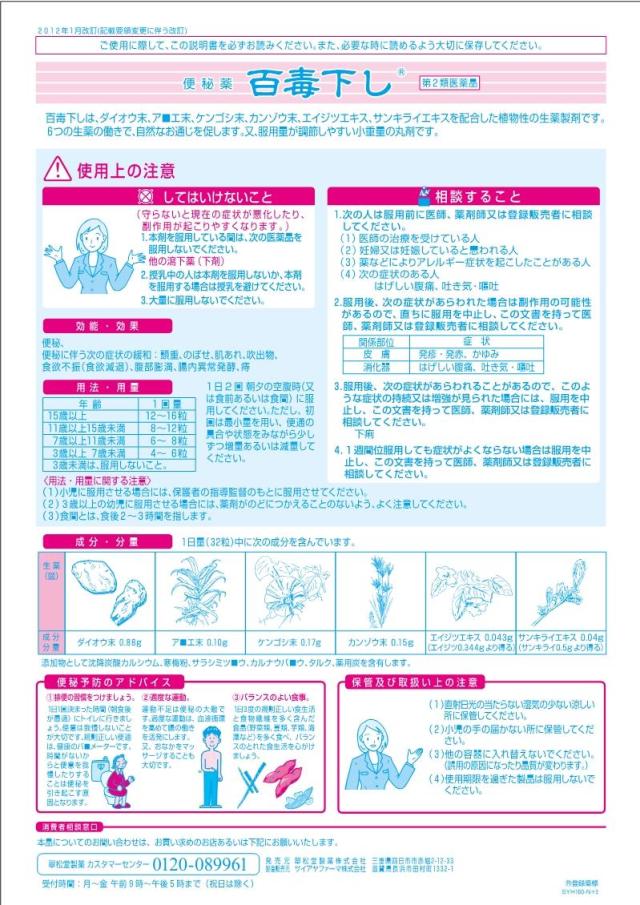 【第2類医薬品】 百毒下し 分包 16粒×30包(480粒) - 翠松堂製薬 [頑固な便秘/肌荒れ]