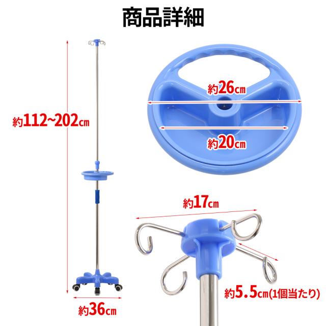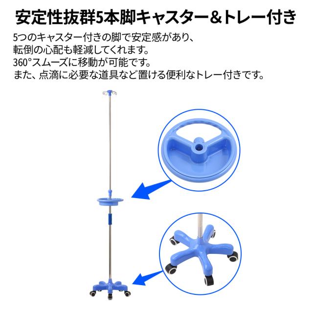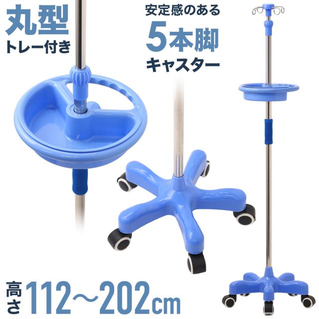点滴スタンド 点滴 スタンド キャスター キャスター付き 移動式 トレー付き 丸型 5本脚 介護 自宅 病院 伸縮 高さ調節 輸血 注射 献血 点滴代 点滴バッグ 治療 医療 輸液 輸液スタンド フック付き 4本掛け 持ち運び 移動 点滴注射 子供 大人 高齢者