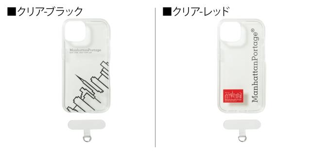 マンハッタンポーテージのiPhone15とiPhone14対応のスマートフォンケース。クリア/レッドはソリッドなクリアBODYにManhattan Portageブランドを象徴するロゴグラフィックと定番のREDネームをインモールド成形で鮮明に表現したケース、ソリッドなクリアBODYにManhattan Portageブランドの最もアイコニックであるNYCの街並みを彷彿させるスカイライングラフィックをインモールド成形で鮮明に表現したケースです。