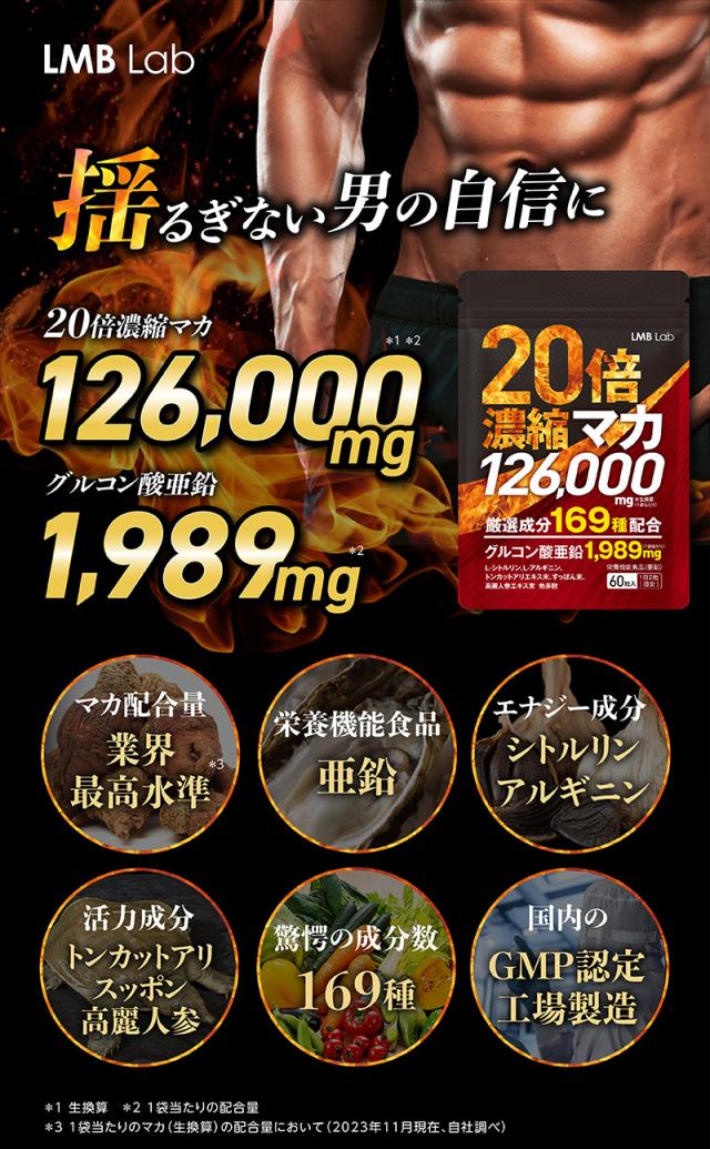 揺るぎない男の自信に、メンズヘルスケアブランド「LMB Lab」から誕生した「高配合マカサプリ」。