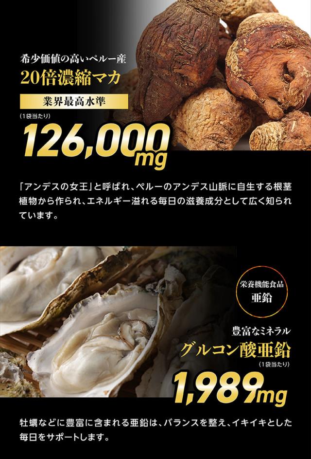 業界最高水準のマカ「126,000mg」(※1袋当たりの生換算)