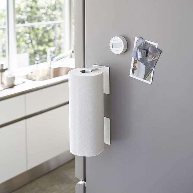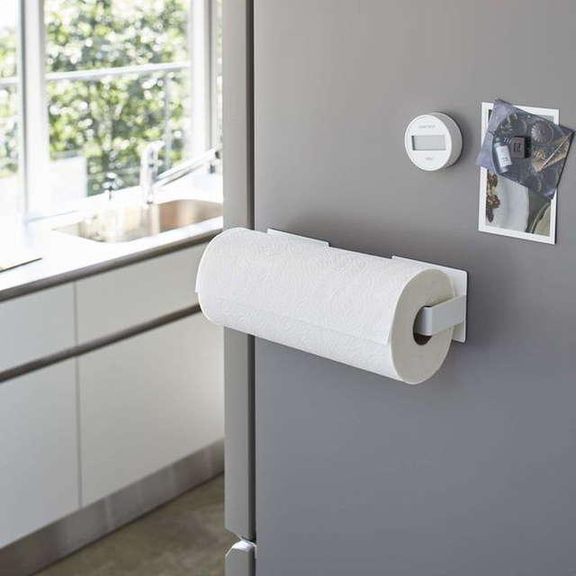 キッチンペーパーホルダー 挟み込み式 磁石 マグネット取り付け 縦向き 横向き対応 Plate プレート ホワイト 白