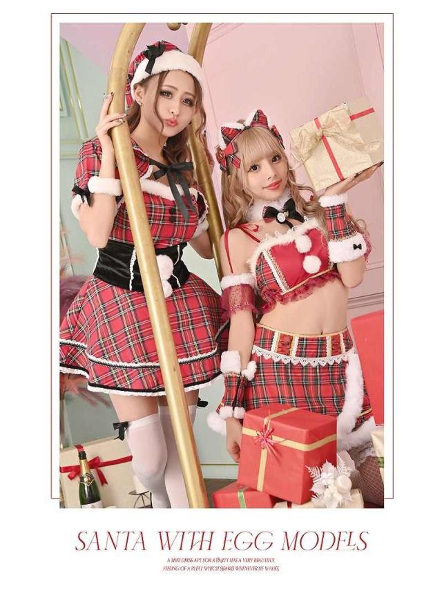 ☆ガーリー溢れるチェック柄は他にはないタイプのサンタコスプレで、周りと差を付けたいキャバ嬢さんにおすすめのアニマルサンタコスプレです。