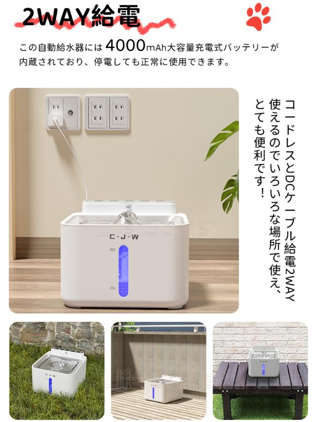 猫 水飲み器 充電式 コードレス 2WAY給電 ペット給水器 猫 みずのみ