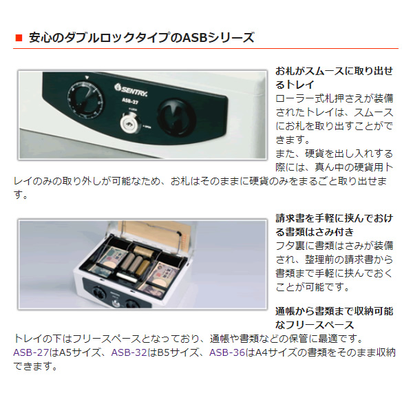手提金庫 キャッシュボックス セントリー日本 ASB-36 ダイヤルキー&フラットキー A4サイズ対応