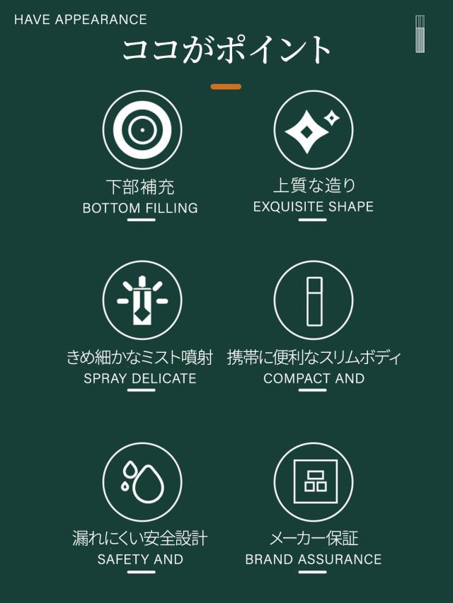 | ★下部補充★上質な造り★きめ細かなミスト噴射★携帯に便利なスリムボディ★漏れにくい安全設計★メーカー保証 |