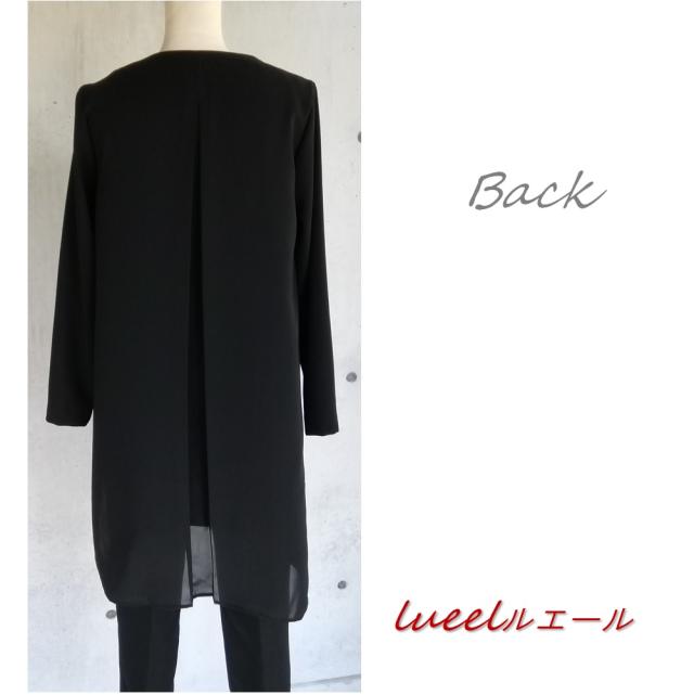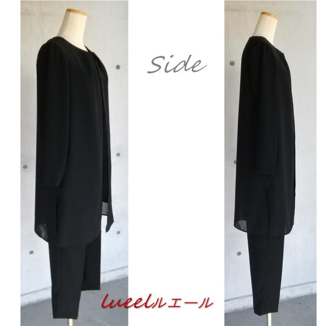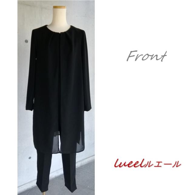 喪服 前開きで着やすいレイヤードチュニックとテーパードパンツのスーツ《SS〜LL》パンツスーツ 135700