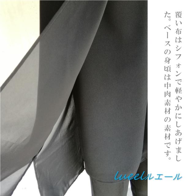 レイヤードのデザインは、覆い布が重たくならないようにシフォンで作成しております。