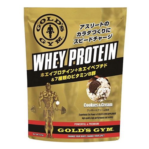 「ゴールドジム ホエイプロテイン クッキー&クリーム風味 720g」は、クランチクッキーの入ったプレミアムなクッキー&クリーム風味のホエイプロテインパウダーです。さっと水になじむ、優れた分散性を持っています。主原料には、高たんぱく質・低脂肪のホエイプロテイン(WPI)を使用していますので、たんぱく質の含有量が多いのも特長です。WPIのホエイプロテインはアミノ酸のBCAAも多く、ウエイトトレーニングを行う方やスポーツを行なう方におすすめ。また7種類のビタミンB群を添加しているので、健康管理を心掛けている方にもおすすめです。720g入。