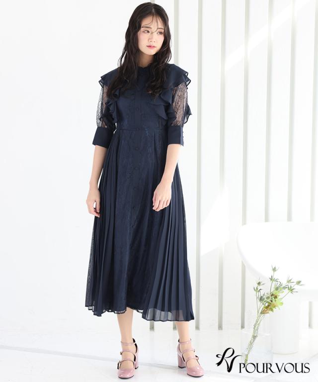 カスケード総レースワンピース【819231922】20代・30代・40代・54代長袖・膝丈・セットアップ・スカート・体型カバー・ジャケット・テーラード・スーツ・大きいサイズなど・即日発送・送料無料結婚式・婚活・披露宴・顔合わせ・二次会・同窓会・お呼ばれ・食事会・謝恩会・親族・七五三・お宮参り・冠婚葬祭・弔事・女子会・デート・入学式・卒業式・入園式・卒園式・ママ・マタニティー・セレモニー・セレブ・パーティー