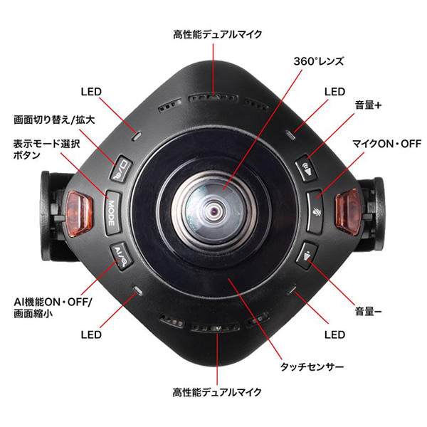 1つのカメラで360度撮影できるWEBカメラ。 ■センサー:500万画素 CMOSセンサー ■ビデオ解像度:最大1920×1080 ■レンズ:F2.0 f=1.1 ■絞り・明るさ・コントラスト:自動 ■最短接写距離:100cm ■ホワイトバランス:自動 ■最低照度:300ルクス ■フレームレート:30fps ■対応規格:USB Ver.2.0準拠(Aタイプコネクタオス、Type-Cコネクタオス) ※500mA以上の電流を消費するため900mA出力できるUSBポートに接続してください。 ■ビデオフォーマット:MJPEG、YUV ■マイク:モノラル ■スピーカー:あり ■パン・チルト:あり(水平方向のみ可能) ■ズームイン・アウト:デジタルズーム ■1/4インチ 三脚カメラネジ対応:可 ■サイズ:W93.5×D61.8×H179mm ■重量:412g(台座含む) ■ケーブル長:2m ■セット内容:カメラ本体、リモコン、台座、レンズカバー、クリーニングクロス、収納ケース、単四乾電池×2,取扱説明書・保証書 ※記載は商品仕様の一部です。仕様説明不足等の理由での返品はできません。特に適合等は必ずご確認ください。