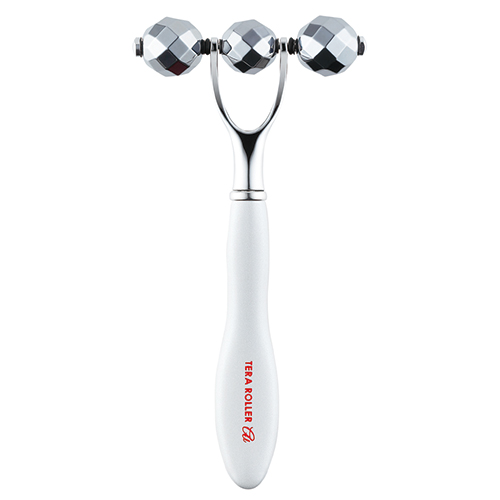 「テラローラー アイ2 パールホワイト」は、ローラー部分にテラタイトを使用した美波動ポイントケアローラーです。48面にダイヤカットされた3個のテラタイトローラーで、お肌に微細で適度な刺激を与えることが出来ます。さらに、人体工学に基づいた大きさの異なるローラーがお肌のカーブに合わせて流線を描き、顔や身体に効果的に働きかけます。