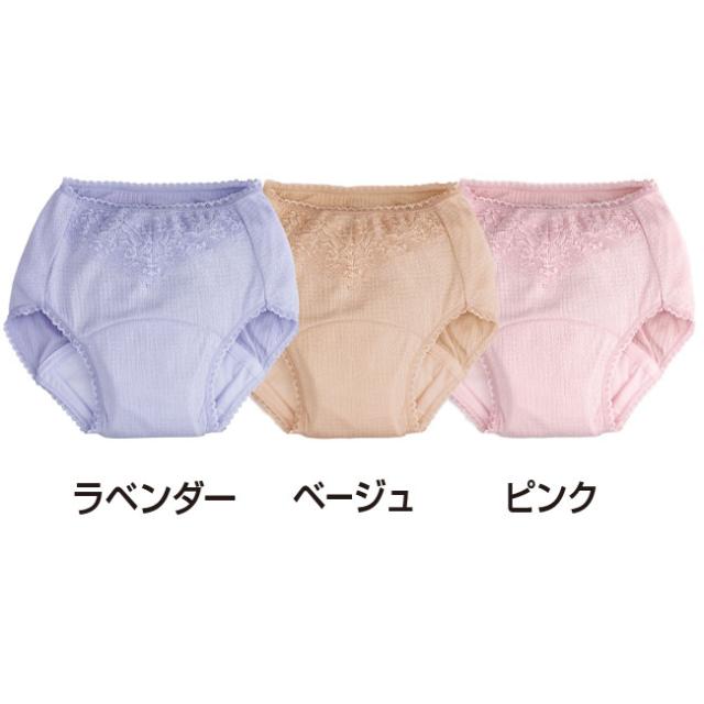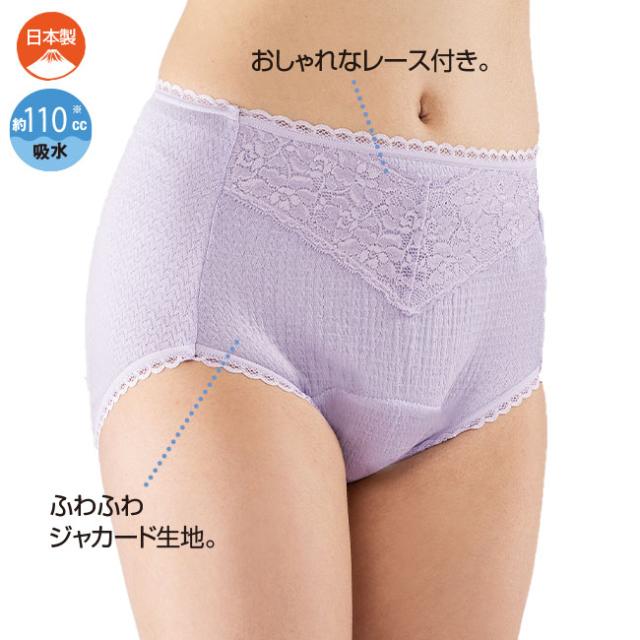特許ガード付き しっかり 吸水 安心 ショーツ 1枚 - ピンク ベージュ ラベンダー M L LL 女性 婦人 レディース 下着 ショーツ 失禁 尿モレ 介護 110cc 吸水 夜 安心 ぐっすり 漏れにくい レース付き ふわふわ ジャカード生地 日本製 121897