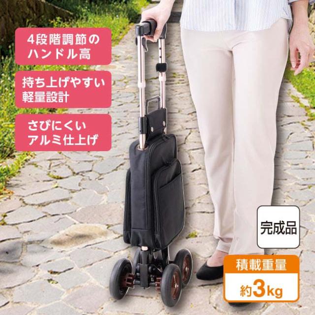 片手でラクラク転がし操作出来る軽量のサイドカー。4段階調節のハンドル高で持ちやすく、お買い物やちょっとしたお出かけに便利です。