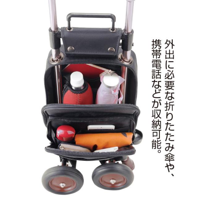 お出かけにはこれひとつで!杖に車輪とバッグがつきました。