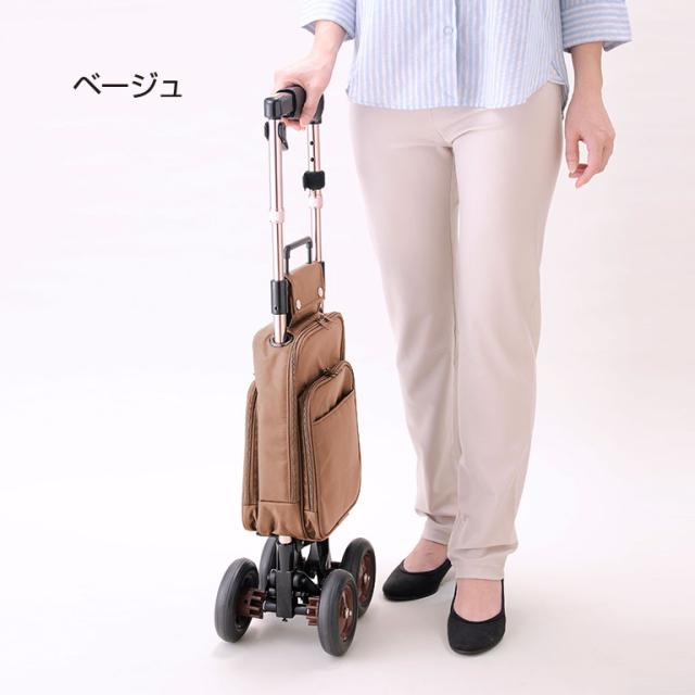キャリーステッキ ライト - ショッピングカート キャリーカート キャリーバッグ 買い物カート キャリー ステッキ 杖 車輪 バッグ 軽量 サイドカー 買い物 お出かけ さびにくい アルミ仕上げ ブラック ベージュ 151036