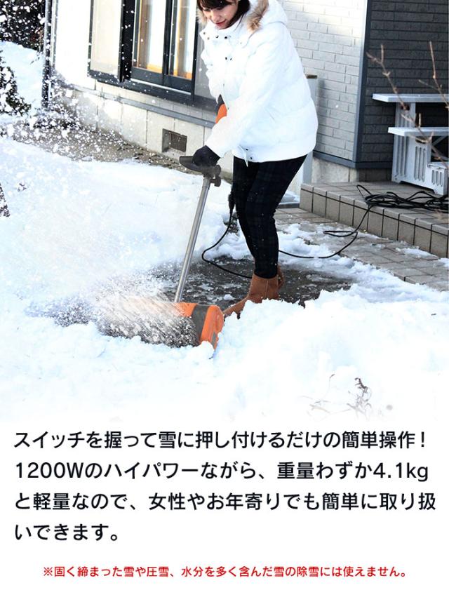 | 家庭用電源で使えるハイパワー1200W! 重たくて大変な雪かきがラクラクできる、ハイパワー電動ショベル。 ショベルを使用しての雪かきは、疲れるし腰が痛くなるしすごく大変…。 時間がかかっていた雪かきも、このハイパワー電動ショベルがあれば、地面の上を滑らせて雪に押し込むだけで3〜8m先へ雪を飛ばしてくれるので、雪かきがすごく楽になります。 スイッチを握って雪に押し付けるだけの簡単操作。 重量も4.1Kgと軽量なので、女性やお年寄りでも取扱いが可能です。 エンジン式の除雪機に比べて運転音が静かなので、近所に迷惑を掛けにくいです。 |