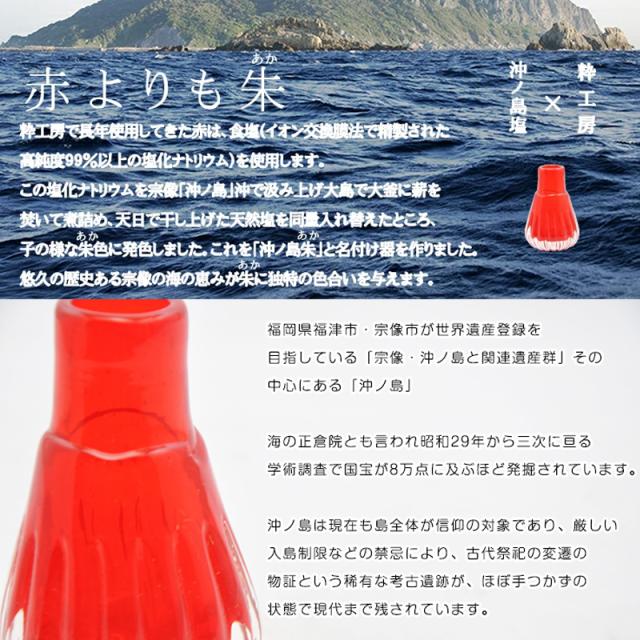 世界遺産「宗像・沖ノ島と関連遺産群」その中心にある「沖ノ島」沖の海水で作った天然塩を赤の原料に使用。