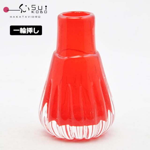【博多びーどろ 粋工房】 ガラスの一輪挿し 高さ約7.5cm ガラス製 沖ノ島朱(あか) NM-16 【日本製】 森田菜生製作 フラワーベース 花瓶 花器 贈答品 ギフト お祝い ガラス 縁起物