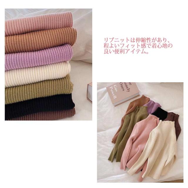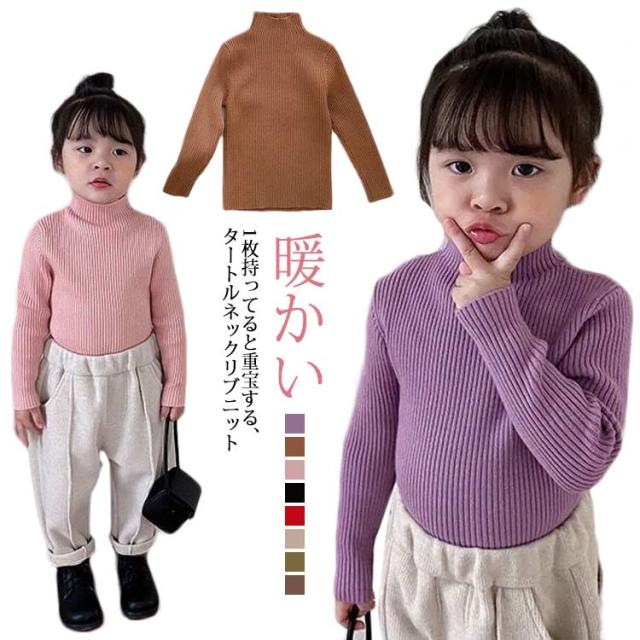 セーター リブニット ニット キッズ ジュニア ベビー 男の子 女の子 子供服 トップス ハイネック タートルネック 長袖 無地 秋冬 暖かい 防寒 あったか シンプル かわいい 暖かい あったか お洒落 普段使い お出かけ 着回し力 上品 防寒 カジュアル 韓国