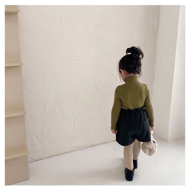 | 1枚持ってると重宝する、タートルネックリブニット リブニットは伸縮性があり、程よいフィット感で着心地の良い便利アイテム。 衿端はフリルのようなディティールで可愛い印象に。 通園、通学のデイリーアイテムに、週末はジャンパースカートやキャミワンピース等と合わせてレイヤードスタイルで♪ 大人っぽい雰囲気の色使いが、コーデのポイントになること間違いなし。のびがよく、肩あきなしでもお着替えカンタン。 | |