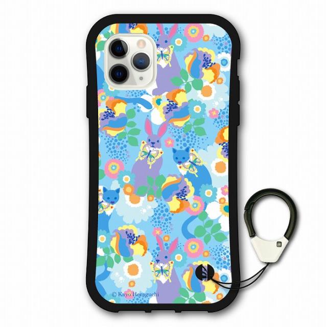ホラグチカヨ iPhone15 ケース 耐衝撃 i-coronケース スマホケース アニマル柄 アイフォン17 17Air 16e 16 15 14 Pro 13 12 Mini スマホカバー パープルウサギ フラワー ブルー iphoneケース グリップケース キズ防止 側面保護