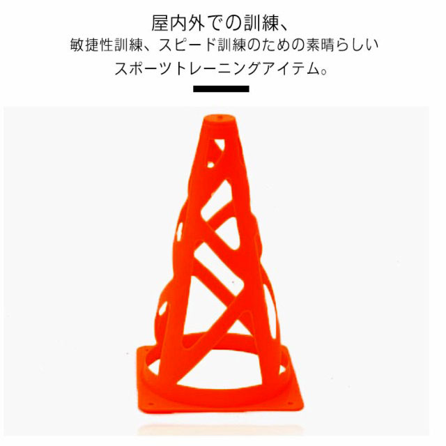 | 三角コーン20個セット。風が吹いても倒れにくい穴あきマーカーコーン。 耐久性と柔軟性のあるPE素材で、蹴ったり踏んだりしても割れません。 穴が開いているので風が吹いても倒れにくいデザインになっています。 屋内外での訓練、敏捷性訓練、スピード訓練のための素晴らしいスポーツトレーニングアイテム。 サッカー、サッカー、バスケットボール、ゲーム、パーティー、イベント、子供の遊び、自転車障害コース、オートバイトレーニング、犬のトレーニング、馬のトレーニングなどに最適です。 | |