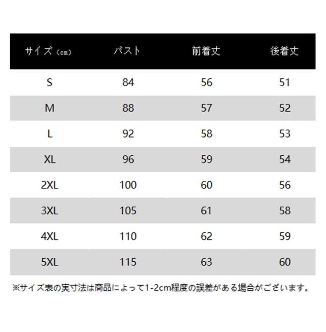 | サイズ | S M L XL 2XL 3XL 4XL 5XL |