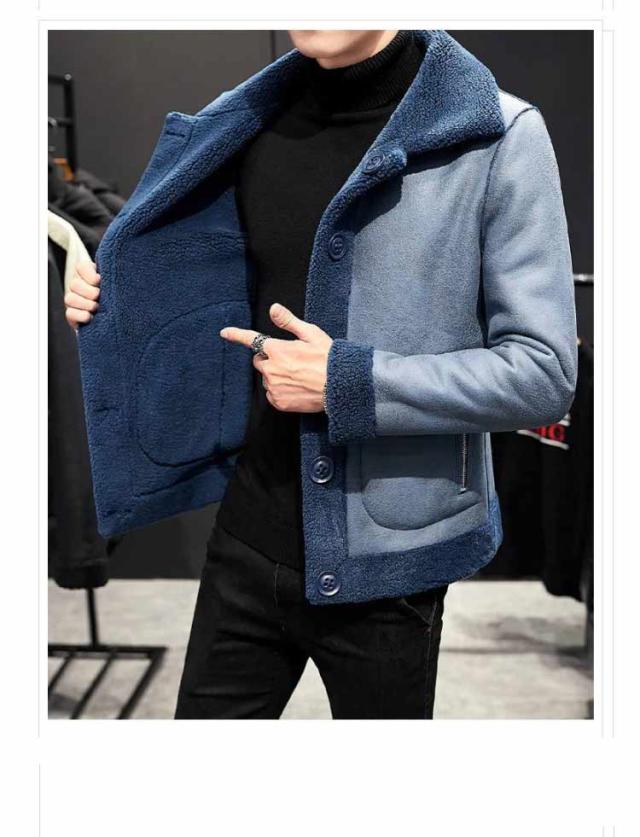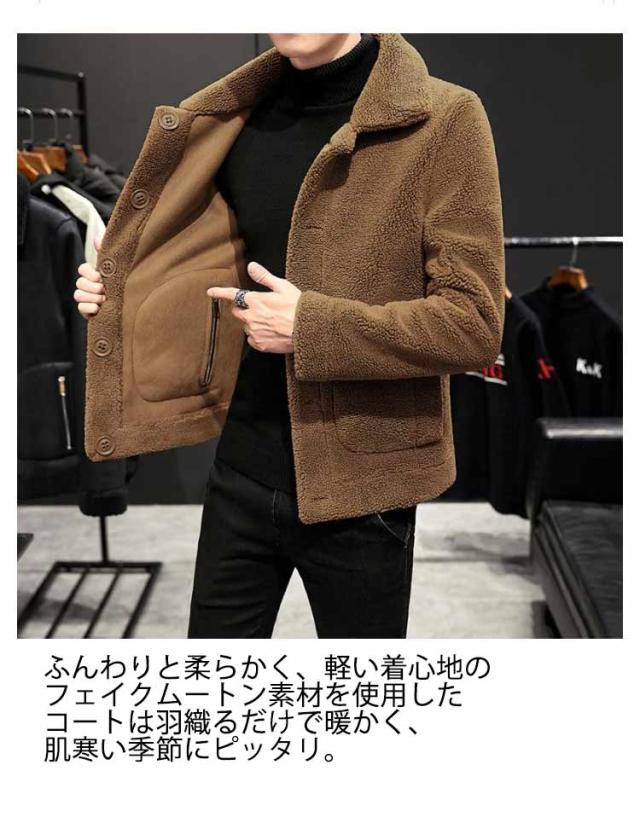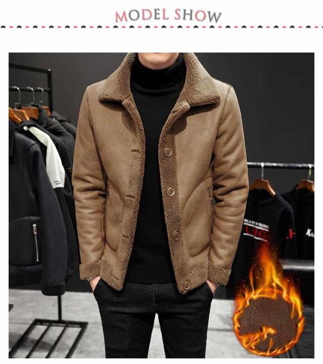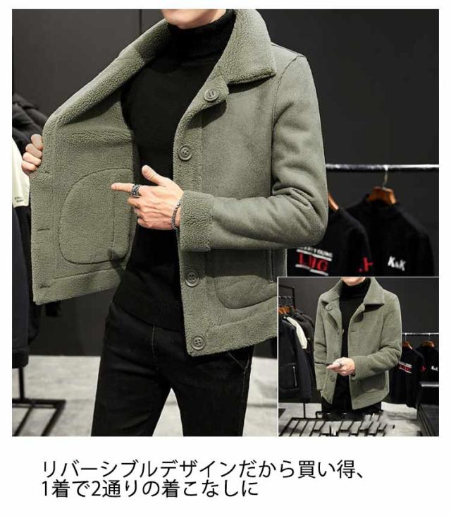 M−9L!フェイクムートンコート メンズ 裏起毛 リバーシブル ステンカラーコート ボアコート ボア ジャケット スエード おしゃれ 大きいサイズ 防寒 秋冬服
