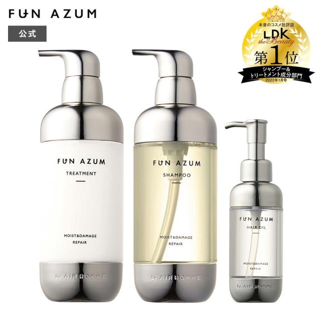 FUN AZUM ヘアケア3点セット シャンプー トリートメント ヘアオイル ファンアズム モイスト&ダメージリペア シャンプー450mL&トリートメント450mL&ヘアオイル100mL 送料無料 うるツヤ髪