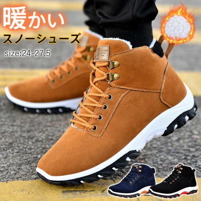 スノーシューズ メンズ ムートンブーツ スニーカー 裏ボア スノーブーツ 雪靴 裏起毛 防寒 ワークブーツ 滑り止め クッション