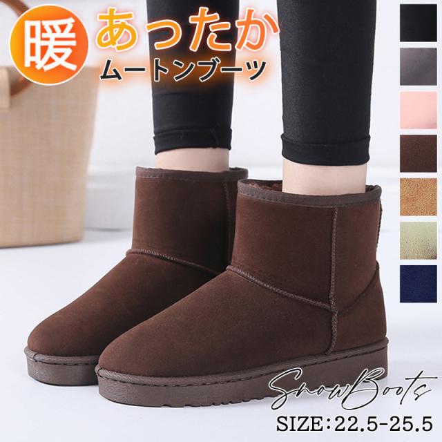 ムートンブーツ レディース 裏起毛 ショートブーツ ボアシューズ 厚底 フラット スノーブーツ カジュアル 防寒 保温 カジュアル