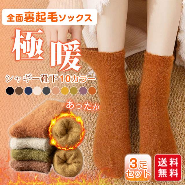新作 裏起毛 ソックス 3足セット シャギー 靴下 あったか もこもこ 冷え取り 可愛い 防寒対策 部屋着 ぽかぽか 10カラー 秋冬 厚手 トレンド レディース 男女兼用 無地 ルームソックス 柔らかいagesugi_sfa