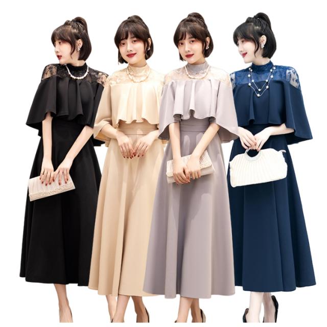 ドレス パーティードレス 結婚式 ワンピース ドレス 袖あり 大きいサイズ ワンピースフォーマルドレス フォーマル お呼ばれ 服 親族 大きいサイズ 大人 上品 20代 30代 40代 50代 卒業式 二次会 披露宴 お呼ばれ 上品 膝下 体型カバー
