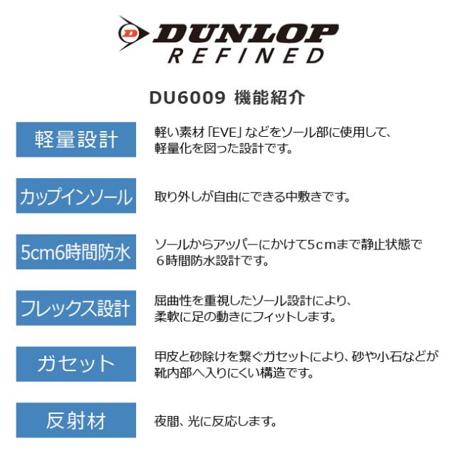 ダンロップ リファインド スニーカー メンズ 防水 4E 幅広 軽量 防滑 歩きやすい 履きやすい DUNLOP DU6009 トレッキング シューズ 雨 靴